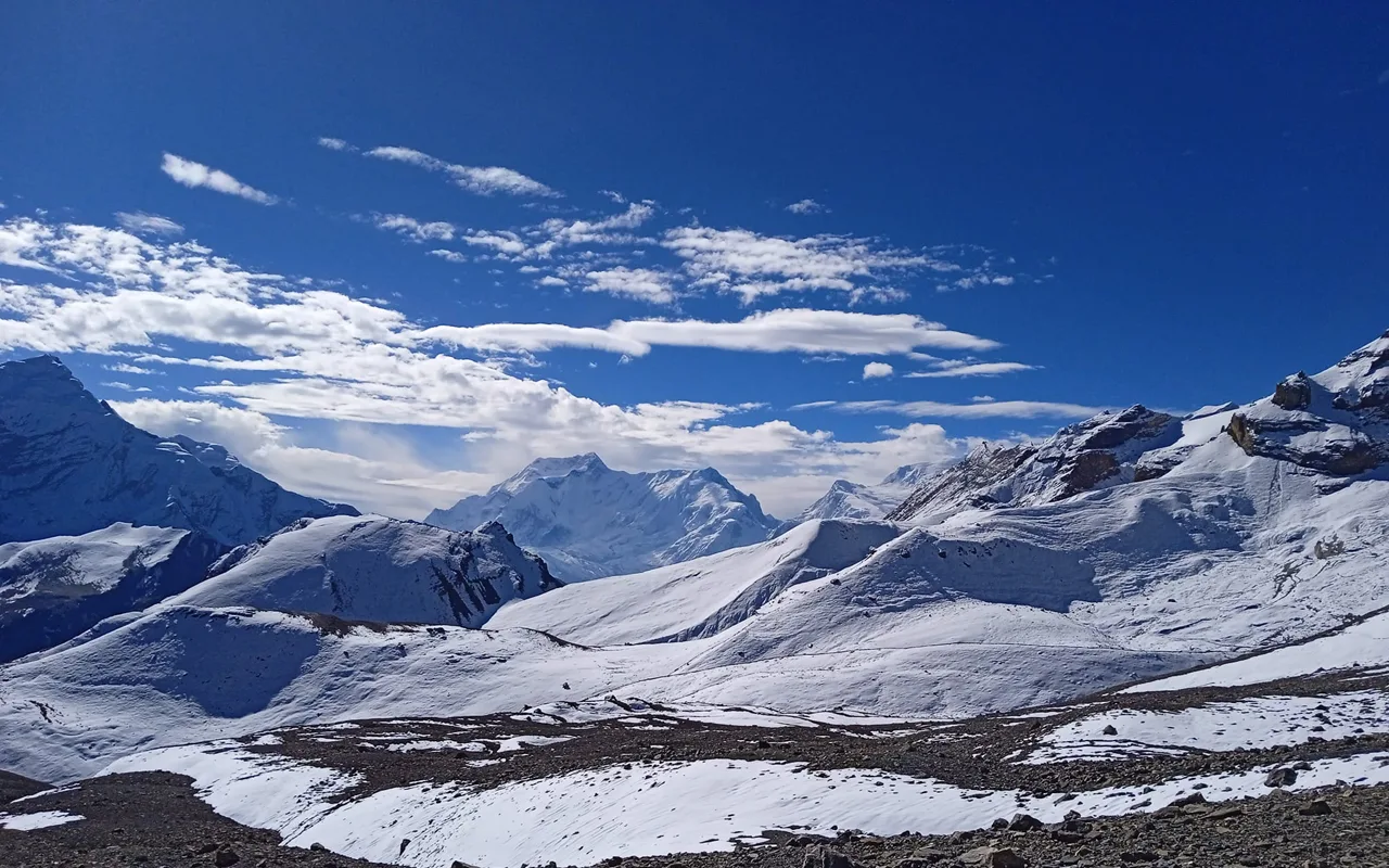 - Na-emeri Larkya La (5160m), Kang La (5240m), na Thorong La (5416m) nwere nlegharị anya ugwu na-adaba na snow.