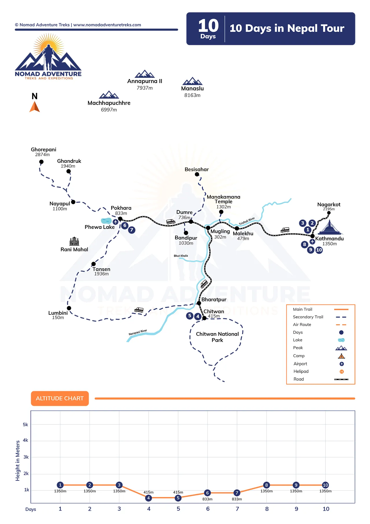 Gedetailleerde reisroute van 10 dagen in Nepal