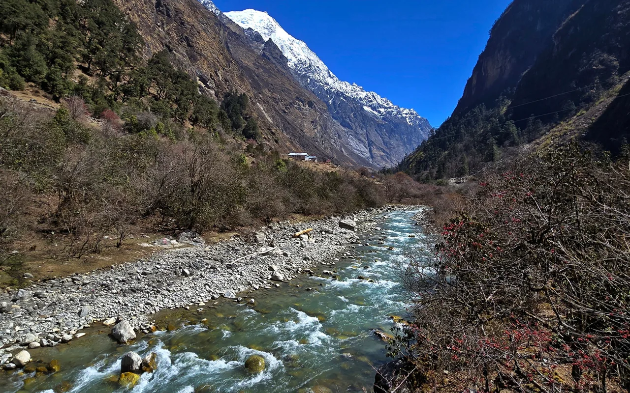 Успут ћете видети различите пејзаже. Пролази кроз густе шуме рододендрона и бамбуса и улази у планинске ливаде. Узбудљиво искуство је висећи мост који ћете прећи преко река као што су Бхоте Косхи Лангтанг Кола.