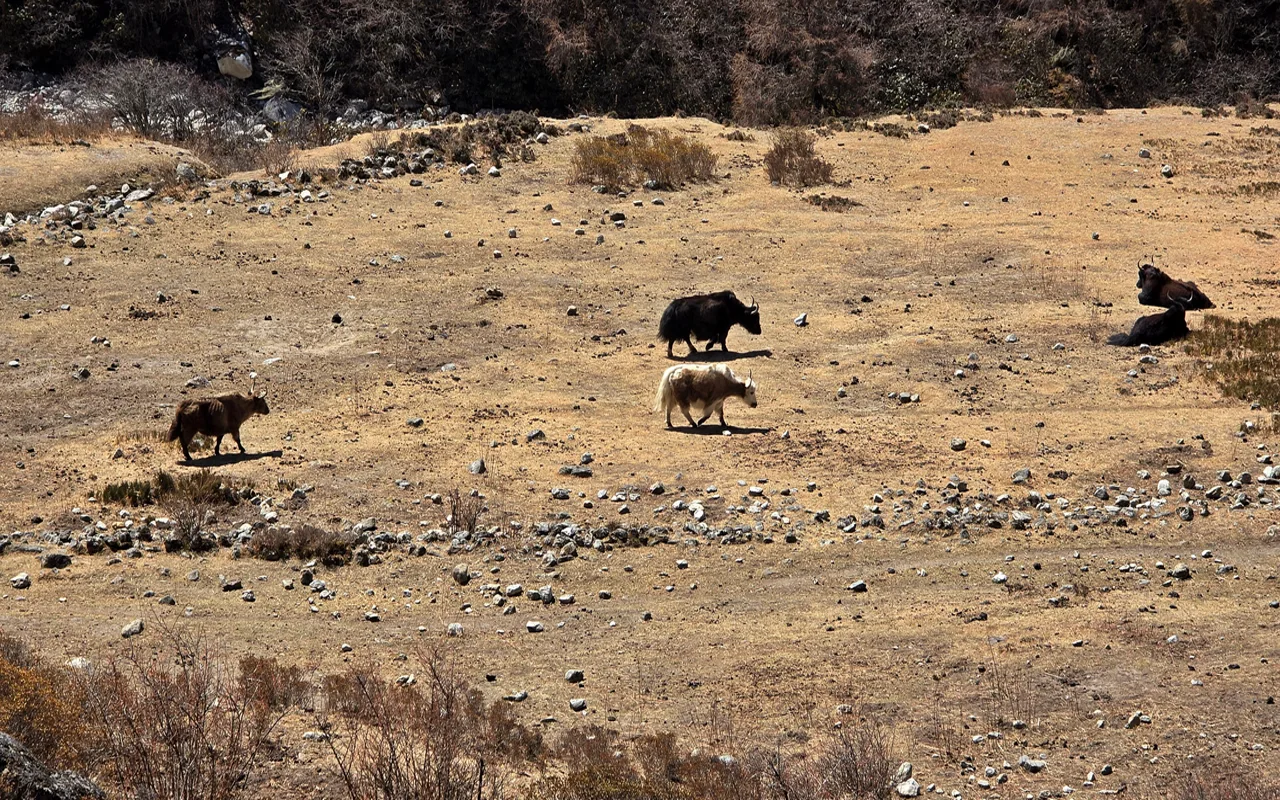 Пролазимо кроз ливаде поред реке, молитвене заставице и чортене, поред села Лангтанг са његовим традиционалним Насеље ТамангОвде можемо видети камене куће мештана, широке и панорамске погледе на планину, као и поља кромпира, јечма итд.