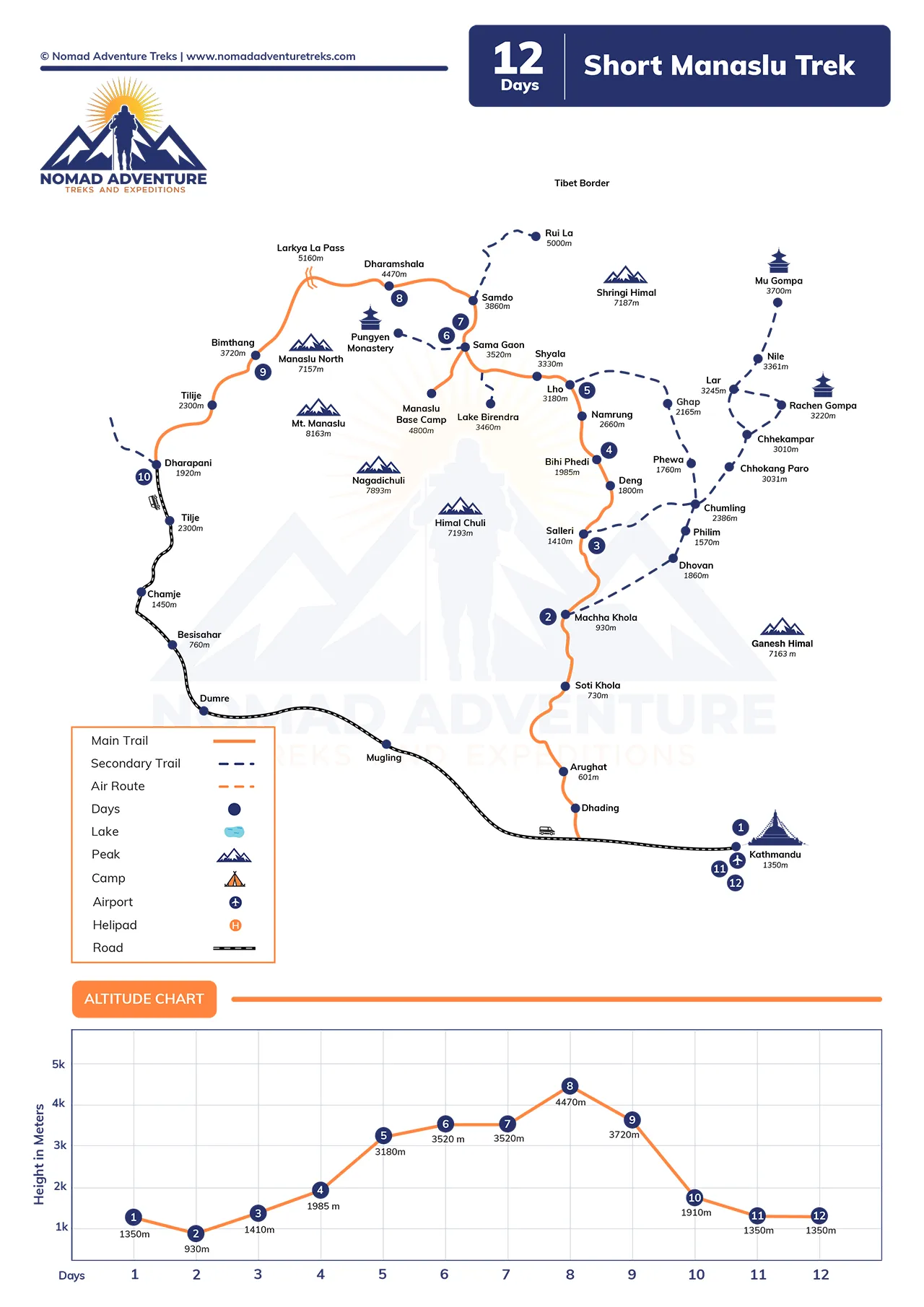 ovo Кратак трекинг до Манаслуа (12 дана) комбинује авантуристичко планинарење на великим надморским висинама са дубоким културним урањањем, 12-дневни кратки трекинг до Манаслуа комбинује авантуристичку надморску висину, а истовремено је тих и спокојан. То је мирни бег од гужве на рутама Аннапурна Еверест.