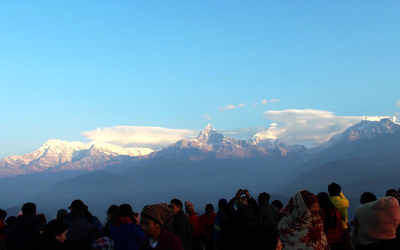Dag 04 av din Glimp av Nepal-resa börjar med en tidig morgonridtur till Sarangkot Hill för att uppleva en underbar soluppgång över Himalaya. Solen går upp och strålar på annapurna, Dhaulagiri och Machhapuchhre-bergen i gyllene ljus, vilket bildar en fantastisk panoramautsikt, som rankas bland huvudattraktionerna på Glimp av Nepal-turen.